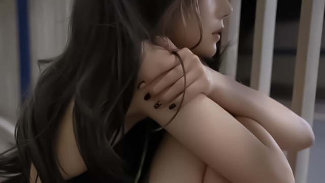 似乎没有意识到眼泪已经不受控地流下,落地窗面倒映出她模糊的脸。