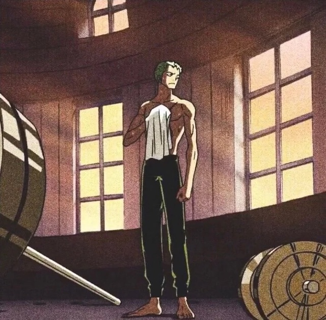 汗水顺着小麦色的肌肉线条流下,索隆顺手拿了一个毛巾擦拭汗水