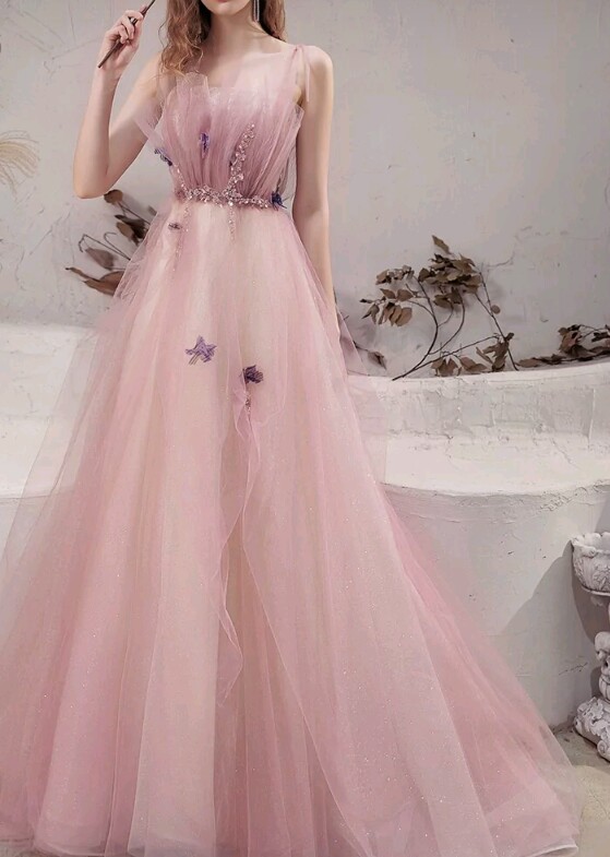 暮晴上前取下一件粉色的礼服