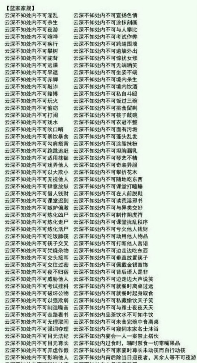课上,蓝启仁因为昨天魏无羡,触犯了家规,所以在课堂上一条一条的念家规而魏无羡听的太无聊了,又在下面开小差