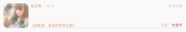 谢谢,轻尘琳小天使,打赏19金币,么么哒