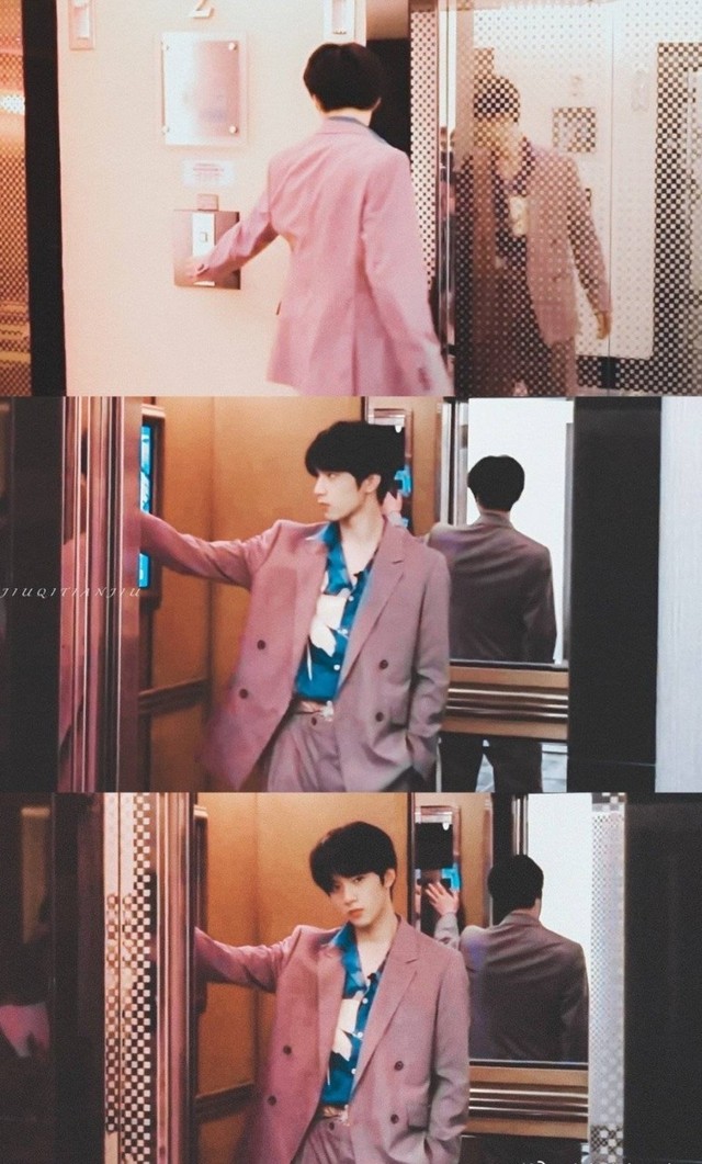 电梯门口正好碰到刘耀文下去扔垃圾
