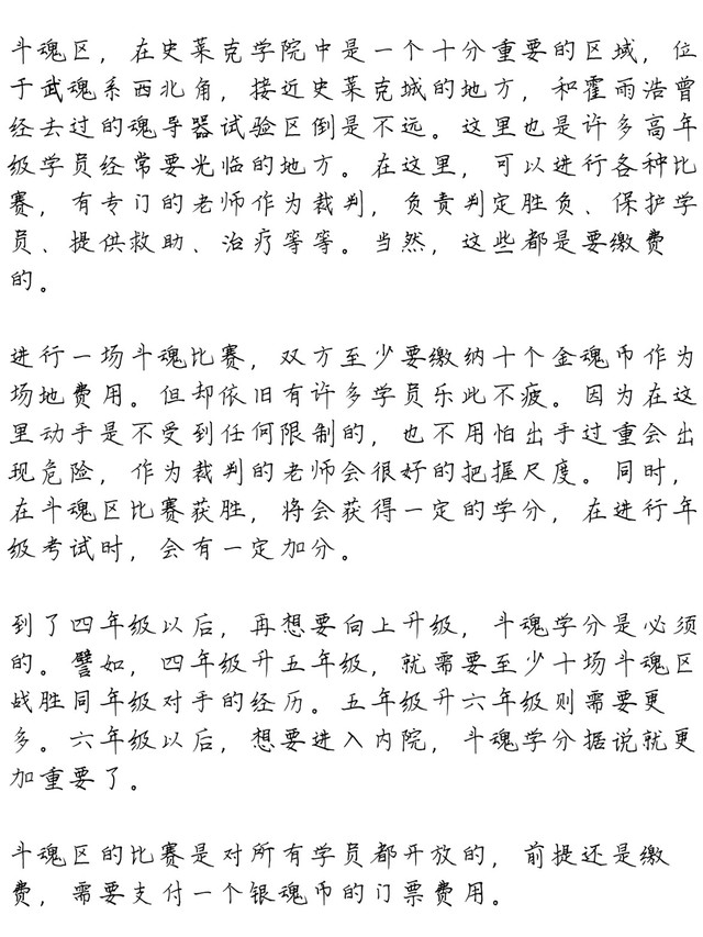唐雅交了两个银魂币,表示是给她和霍雨浩交的。可王冬和萧萧没带钱,唐雅只好又交了两个,带着霍雨浩和两个没带钱的人进了斗魂区。斗魂区呈六边形,差不多和史莱克广场一样大,中央是大片的空地,显然就是学员们比拼之地。周围则是一圈圈逐步向上的座椅,大约能够同时容纳三千人的样子。