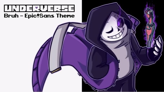 epic sans,来自于epic tale,在一次实验事故中与自己的父亲epic!gaster 融为一体,眼睛上出现了裂缝,手上也有手洞,只不过戴着手套看不见而已。GB被大幅度地加强,威力相当于一个核弹,自己本人也说过:“只要我愿意,整个地下世界都会被我踏平。”epic,是“史诗”的意思