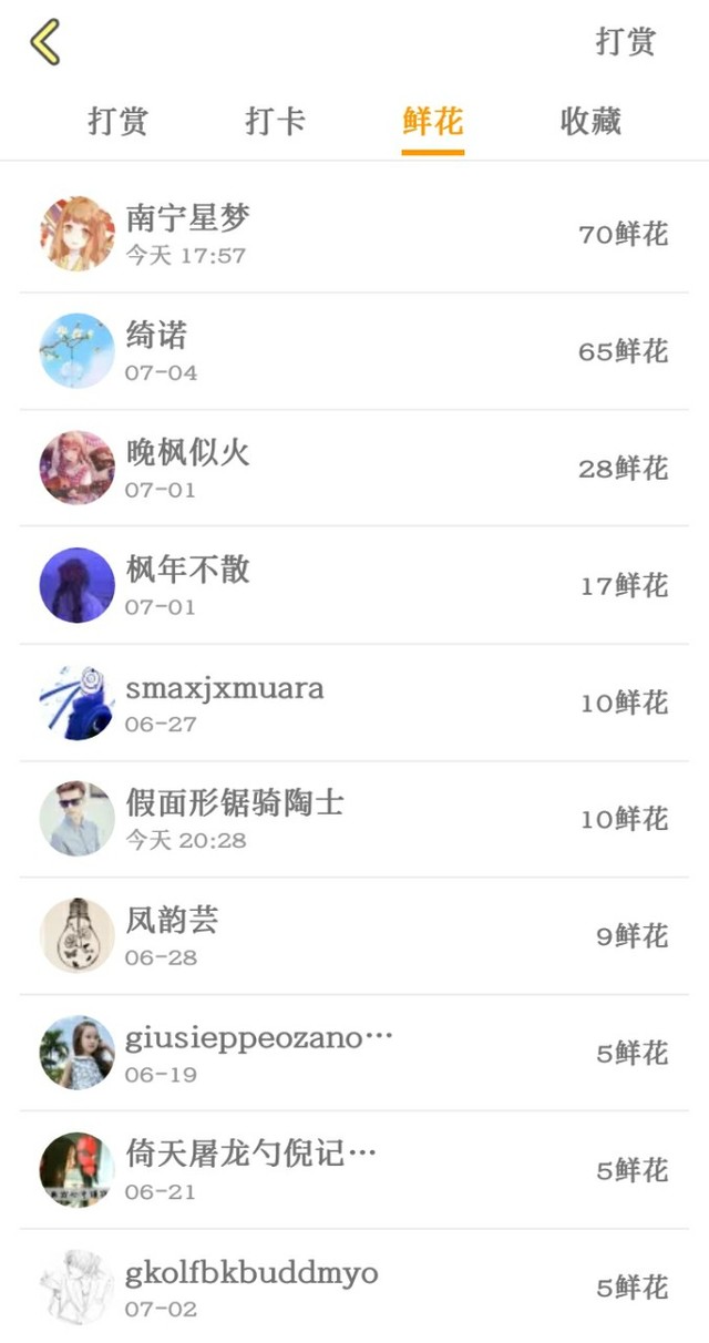 作者星染感谢这12位伙伴的赠花,谢谢
