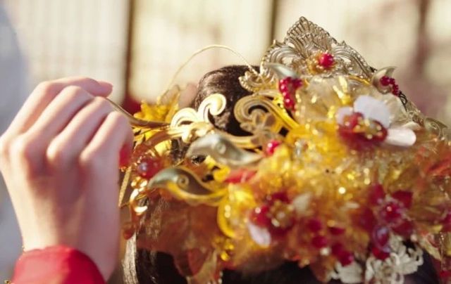 皇室的婚礼,自然是尊贵些,只见,新娘子盖着红盖头,缓缓走上殿前,众人立马安静
