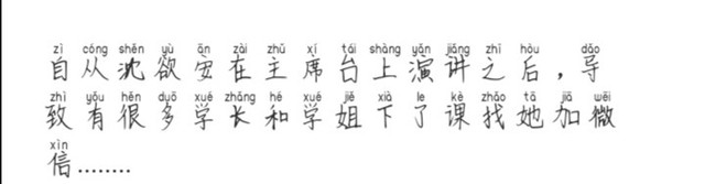 他大慨看了看纸条内容,就当众大家念了念来自林柚柚的情书。