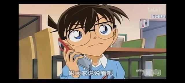 江户川柯南(假装给新一打电话)哎~已经知道凶手是谁了吗?新一哥哥!