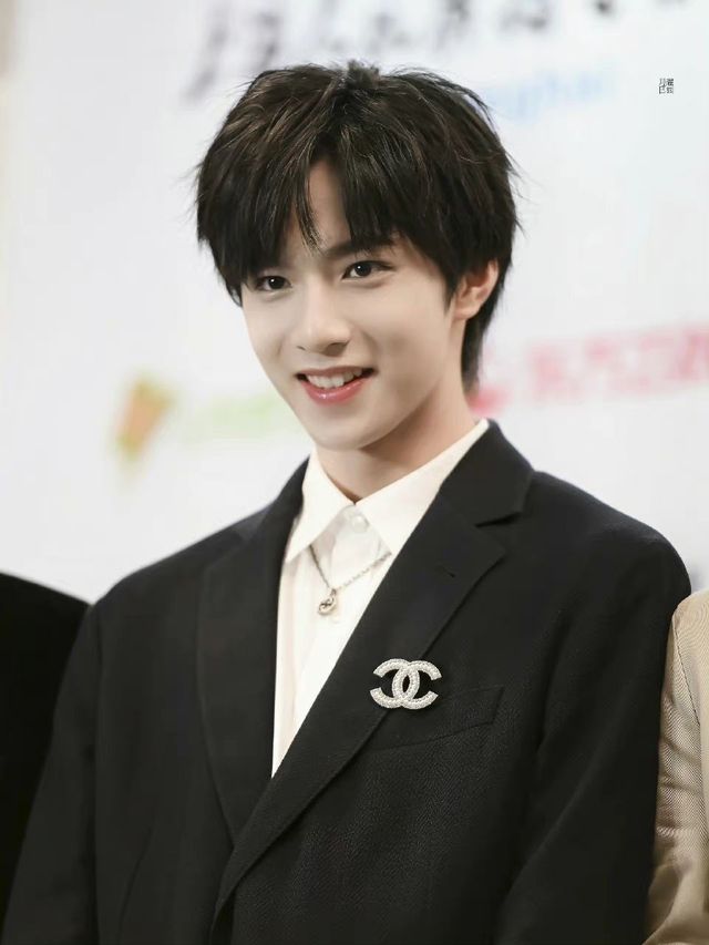 刘耀文一身西装革履,西装里面是一件白色的暗纹提花高领衬衫,领带打得整整齐齐,整个人神采奕奕,清爽又帅气