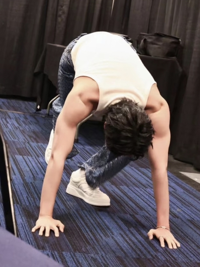 他们为了能撑下来好几个小时的演唱会一直在健身,他也不例外。