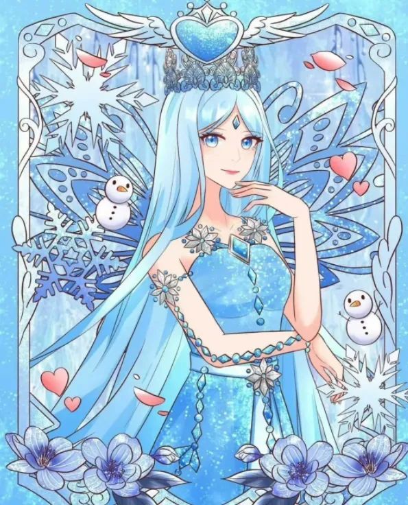在这次的作品中,苏禾描绘了叶罗丽仙境中的“冰雪公主”韩冰晶。她如同冬日里的一片雪花,纯洁而美丽,散发着令人陶醉的光芒。她的眼睛犹如寒星,闪烁着智慧与坚定,仿佛能洞察世间的一切奥秘。她的长发如瀑布般倾泻而下,每一缕发丝都闪耀着冰晶般的光泽,仿佛是天地间最纯净的精灵。她的衣裙轻盈飘逸,如同云朵般柔软,上面镶嵌着无数细小的冰花,在阳光下熠熠生辉。她的姿态优雅高贵,如同一位真正的公主,让人不禁为之倾倒。在这幅画中,我试图捕捉到韩冰晶那独特的美,将她那冰雪般的气质完美地呈现出来。