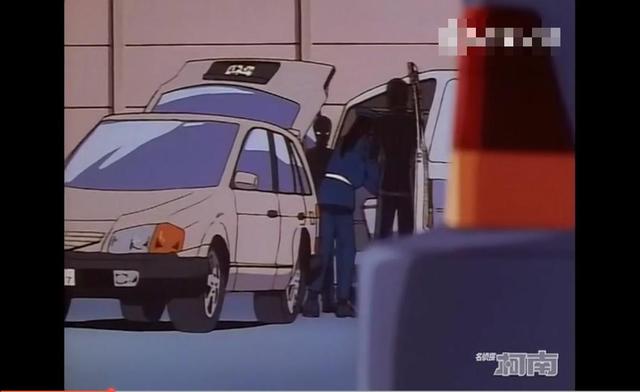 柯南听到了声音来到银行的停车场发现