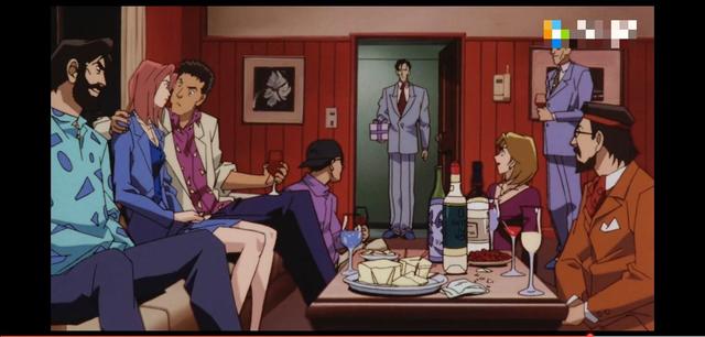 毛利小五郎端起高脚杯看了看酒然后轻轻得摇了摇又闻了闻后喝了一口