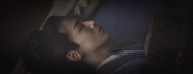 他玉颜冰骨,双眼禁闭,长长的睫羽投下点点阴影,唇惨白无血色,但美好的轮廓又不禁让人想象他红唇如血又是怎样的芳华
