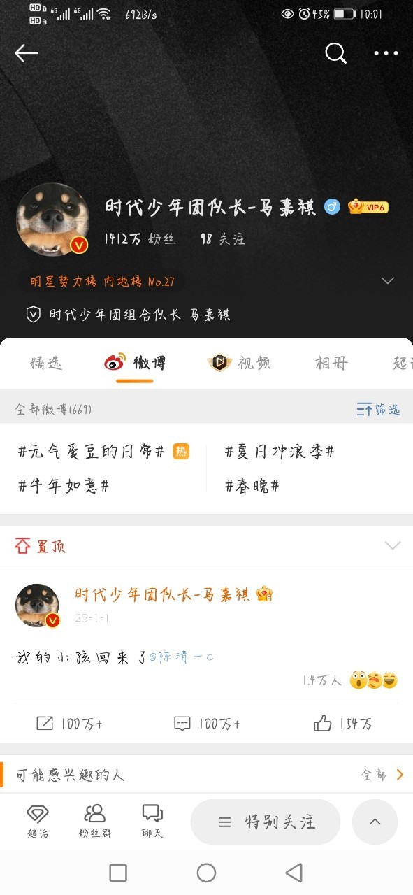 马嘉祺的一句“我的小孩回来了”直冲微博热搜榜一