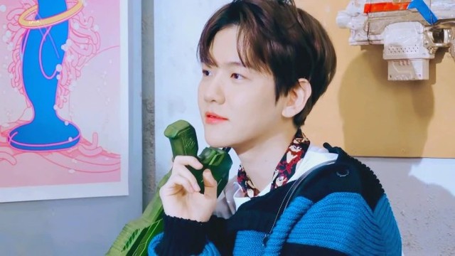 软糯的音色传来,边伯贤顺着那双粉色的兔耳朵棉拖鞋向上看去。