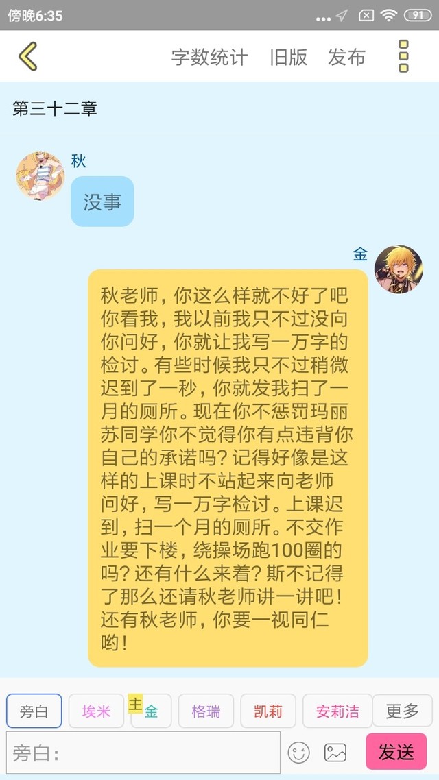 金秋老师不带你这么偏心的吧,之前我就只不过有那么一次而已,你让我写了1万字检讨,你还说大家记住了,以后不管是谁犯错,都必须这样。第二次就算第一次,也必须写,而且第一次必须写满1万字。而且不得水文,必须发自内心,写的不好,还要请家长,家长不来的话还要扣学分,这不都是您说的吗?
