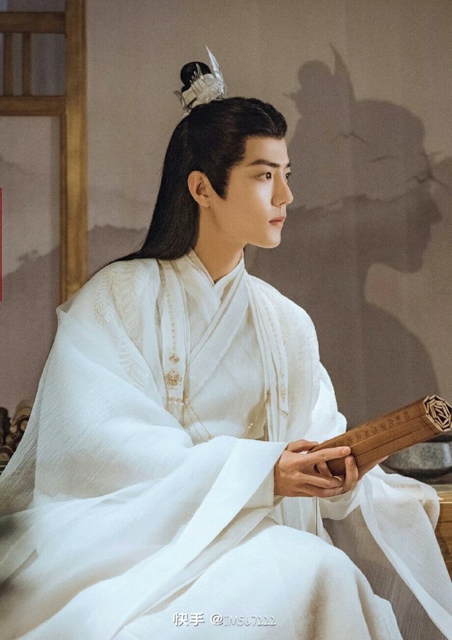 坐在大殿中央的白衣男子衣冠楚楚,发顶立一尊银雕发冠,英气十足