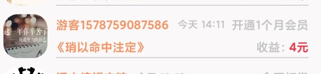 感谢游客1578759087586大大开通会员一个月,爱你们哦,请继续支持我