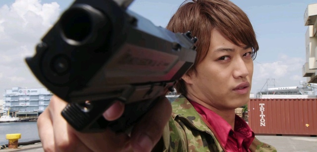 #王小明(扔掉手枪,拿出腰带并戴在腰上,打开卡盒,从盒中取出一张卡片)我只是一个路过的假面骑士,你给我记住了!