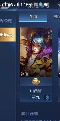在奋斗了一晚上之后,顾未易终于再一次回到了王者,并且拿到了韩信的金标。