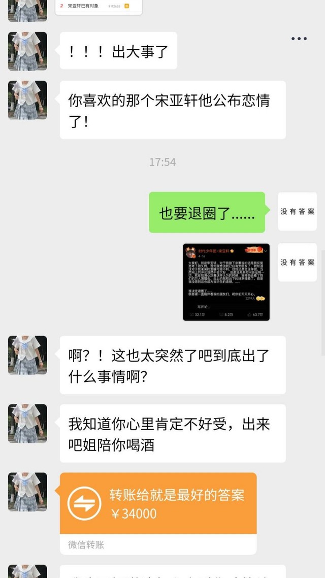 宋亚轩正在微信上和宋慕紮聊天。