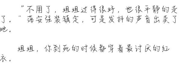 落安去过很多地方,可是脑海里还是忘不了姐姐死去的模样,这,竟然成为了执念。