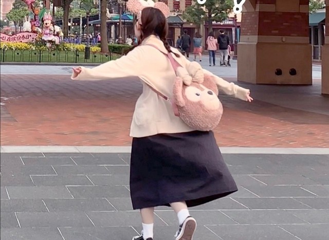 头上还戴着一个小兔发箍。
