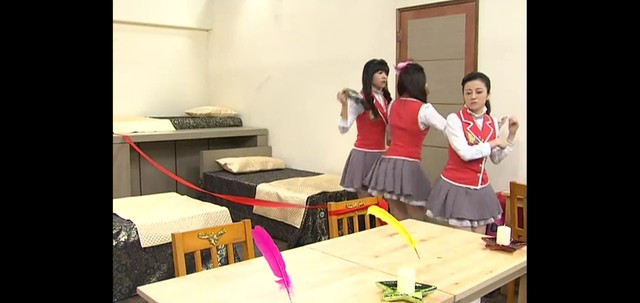 芭瑞丝(开心)搞不好,明天飘呀飘她们就会回来了 ,你们就会换寝室,所以呢,不要弄脏那个床 。(翻了个白眼 )