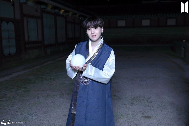 “Suga笑甜一点”摄影师看着闵玧其略微严肃的表情。