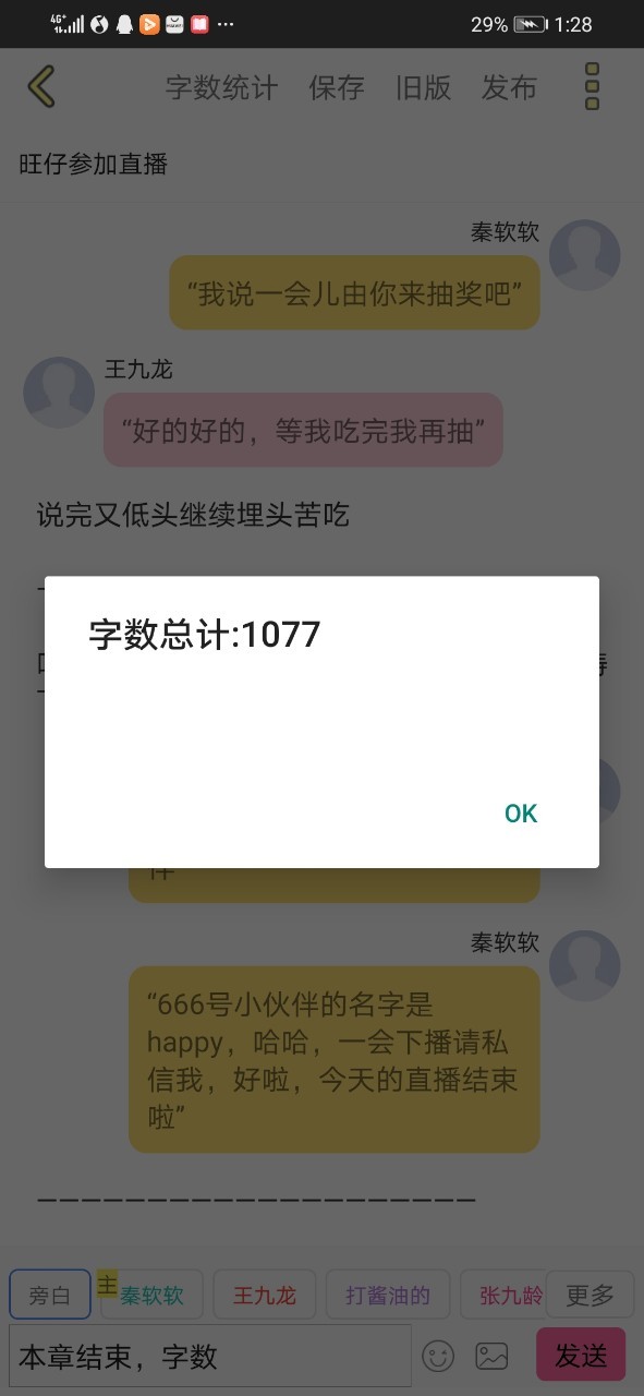 秦软软“666号小伙伴的名字是happy,哈哈,一会下播请私信我,好啦,今天的直播结束啦”