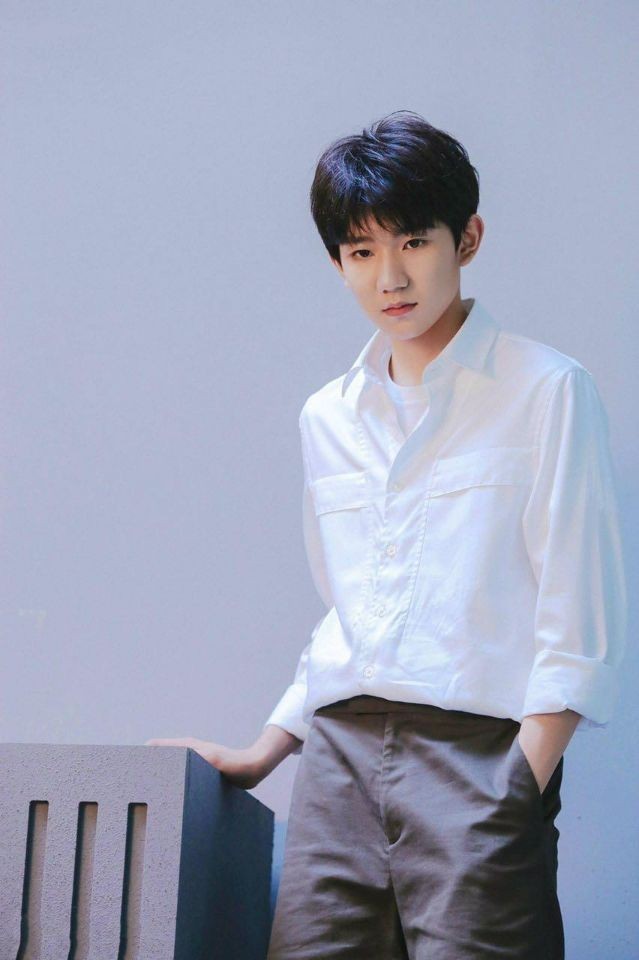 石阶旁,王源穿着一身白色衬衫,站在那里。