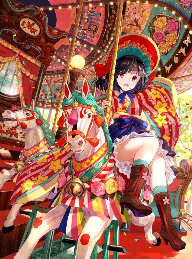 长的很像繁星的女孩那个旋转木马好漂亮啊!
