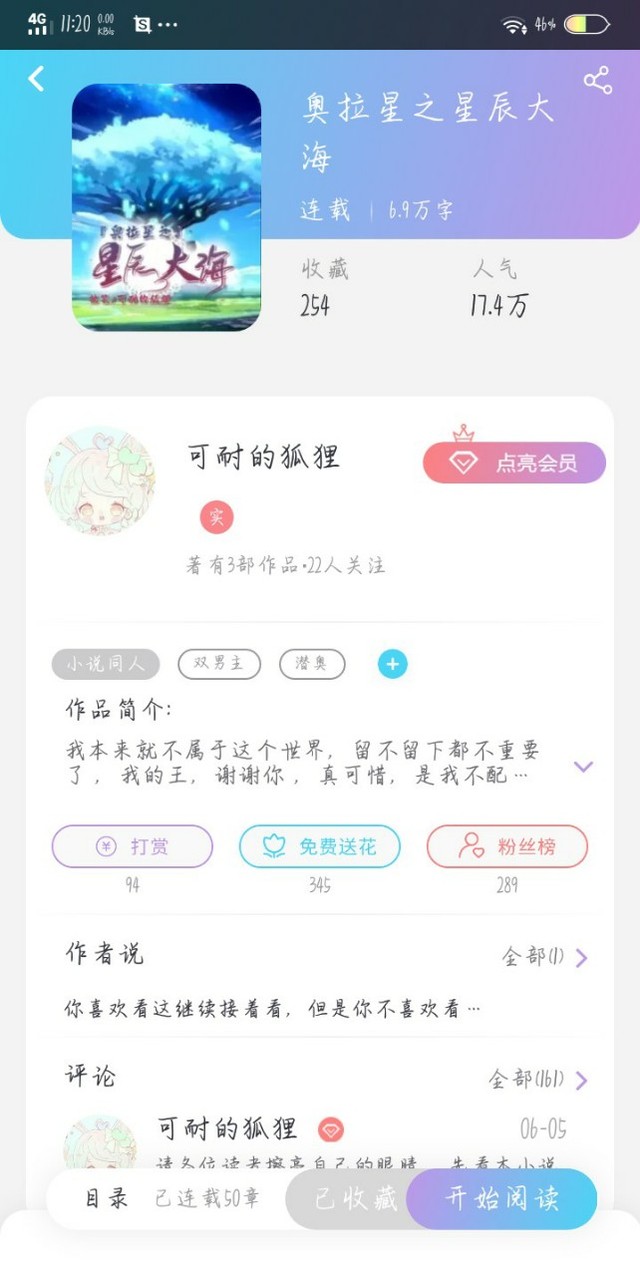 狐狸大大苍天呐,我是造的什么孽呀 ,两部剧同样的字 数,这一部明显字数多一些 ,可为什么人气收藏评论相差这么多呢 ?这一部第二季都出来了 ……作为三部剧的作者 ,我只想说 ,这一部明显比星辰大海写的好 ,星辰大海,我都感觉和之前也就是我卖给我同学的那个号,上面那个小说内容差不多 ,只不过改了 。