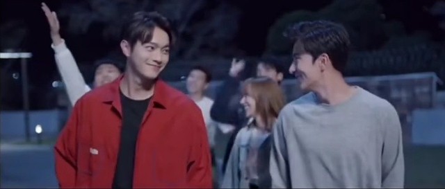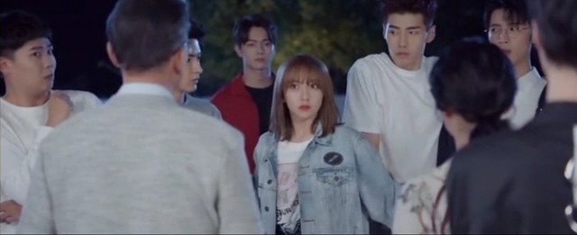 老K正在自嗨跳着舞,一转身与童谣父母对上眼