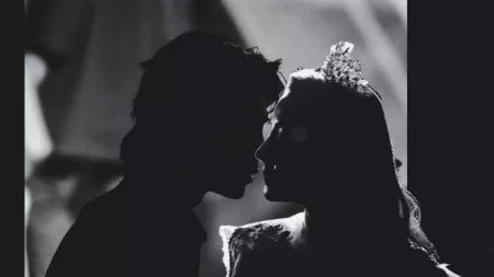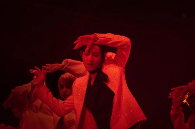 最后的最后,江桉渝靠在肖战的肩上,肖战低头,以一吻结束了这个舞台。