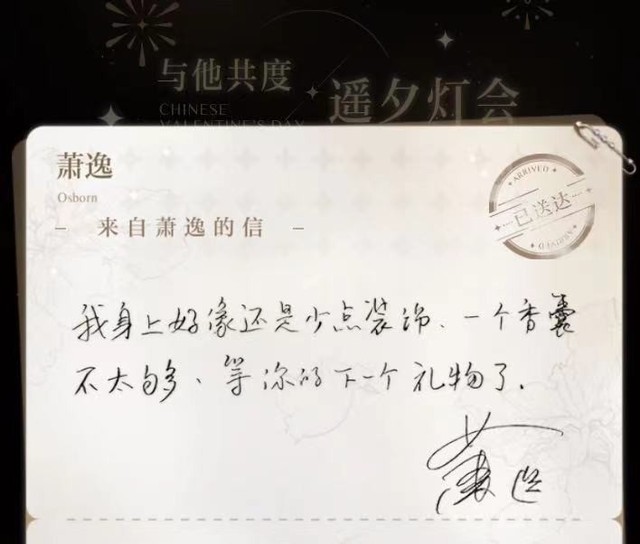 萧逸也谢谢你的香囊,我会好好保存的。