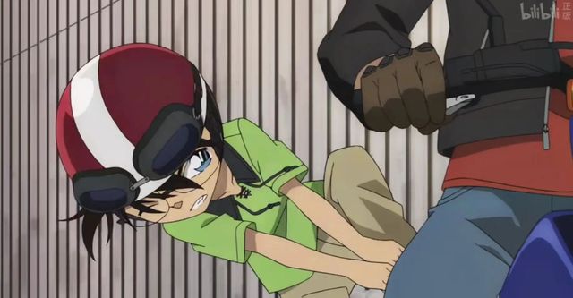 看到对方从转角处走出的瞬间 ,世良条件反射的惊叫了一声,柯南立马意识到下车已经来不及,赶紧拽着身前的握把往旁边偏。犯人同时举起手枪再次向他们射来一发子弹,好在二人身体偏移,子弹只是险险的擦中世良的头盔,让她因为冲击力陷入了短暂的眩晕,连带着柯南和摩托车一起倒在了地上。