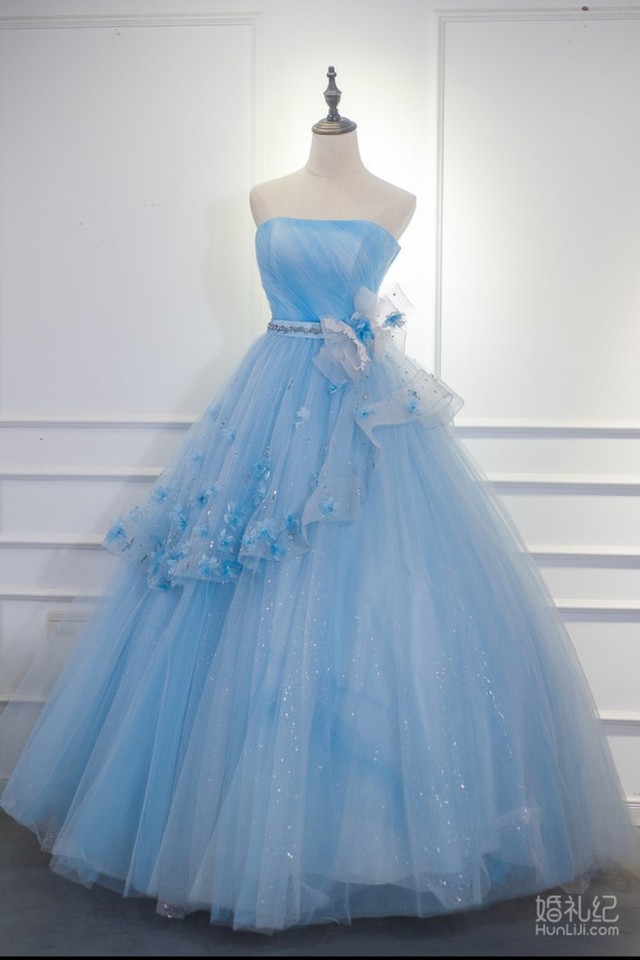 而许梦柔一身蓝色礼服,腰间也有一个比较大点的蝴蝶结