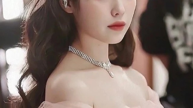 闪烁的宝石彰显着主人的尊贵,她皮肤冷白,涂着殷红的唇蜜,略施粉黛,美得不可方物。