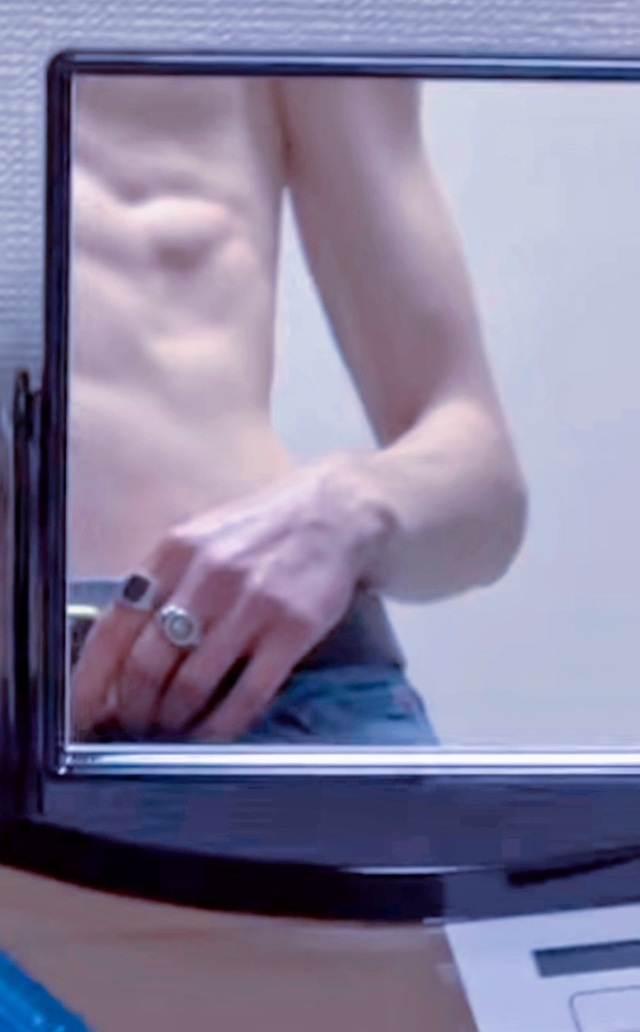 并且可以清晰的看到他的身材,骨瘦如柴却肌肉分明。
