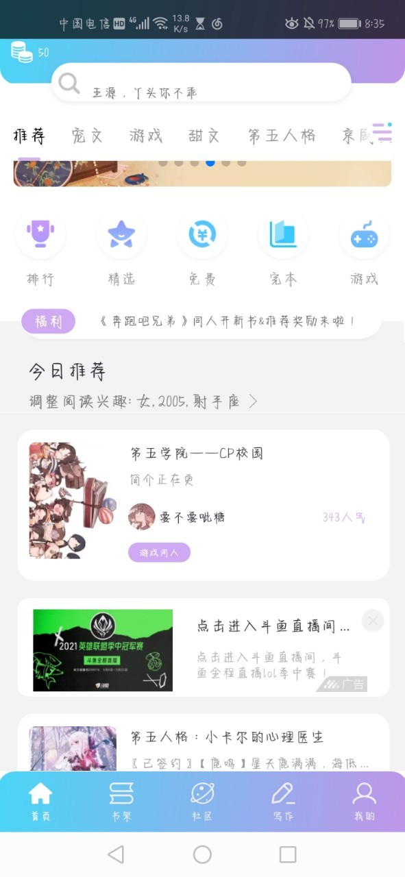 作者塞哦吼吼,给你们看我的作品上推荐了耶,太棒了,太棒了,我又有活力了