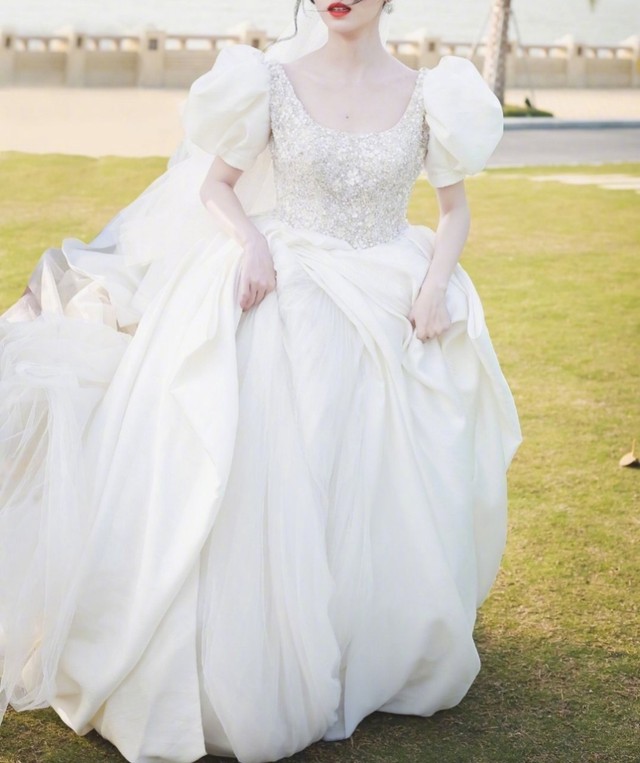 (配上了十八张这一位小粉丝自己拍的,“小银河”穿着一身纯白色的婚纱的照片。)