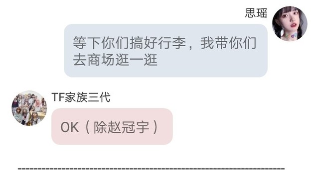思瑶赵冠羽你行李弄好了吗,弄好了的话我们一起去商场吧