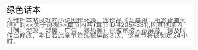 作者明天会尝试以截图的形式发出去,如果你今天上午还能看到,下午再来看的时候没有了,就是被屏了。