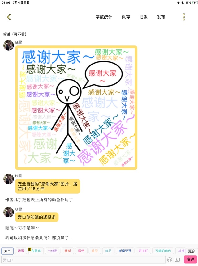 晓雪完全自创的“感谢大家”图片,居然用了18分钟