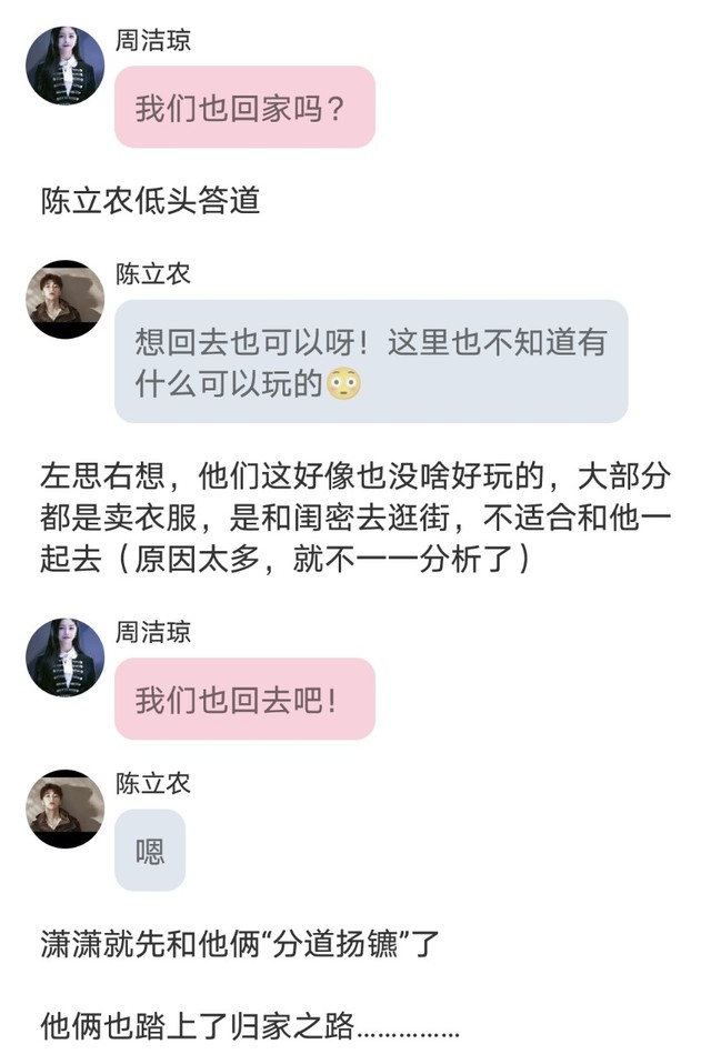 陈立农看到周洁琼睡着的样子还蛮可爱的,有点不想去打扰,于是只能把她抱回去了,周洁琼整个人附在他的身上,脸是朝着他的脖子,看不见脸,他又没有她家的钥匙,就让他先睡在他的酒店吧!于是工作把她抱进了酒店………………