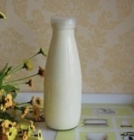 牛奶是玻璃瓶子装的。