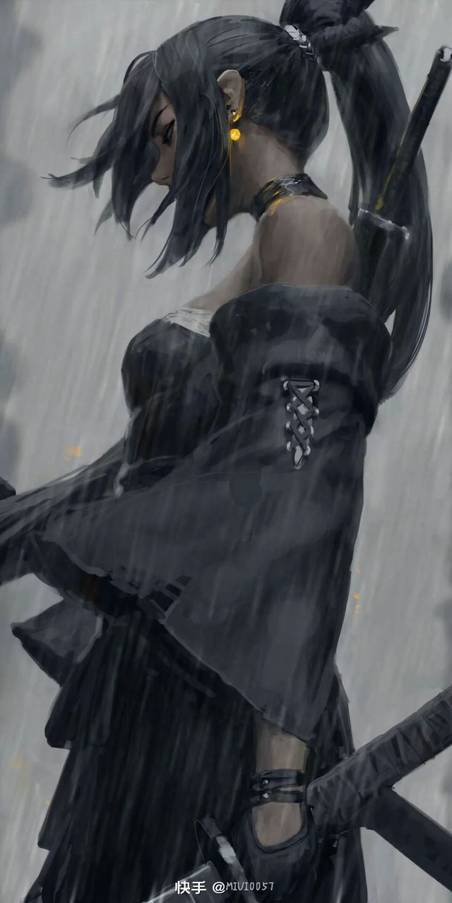 一头绿发,黑色的穿搭,手上拿着把大剑