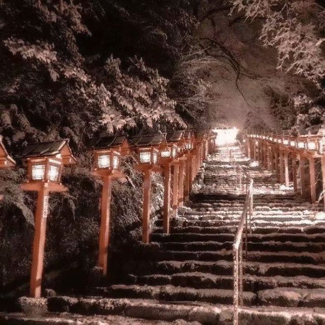 阶梯两侧的灯笼带着浓浓的古代气息,路上还有行人的脚印,倒也是充满着生活气息